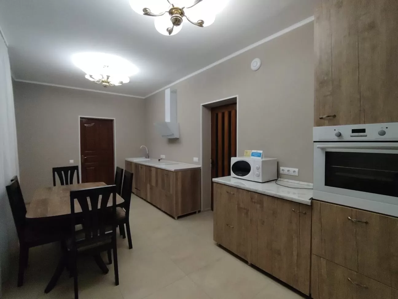 - Просторная кухня, оснащённая всей необходимой техникой и посудой, а также посудомоечной машиной, рассчитанная на два номера.