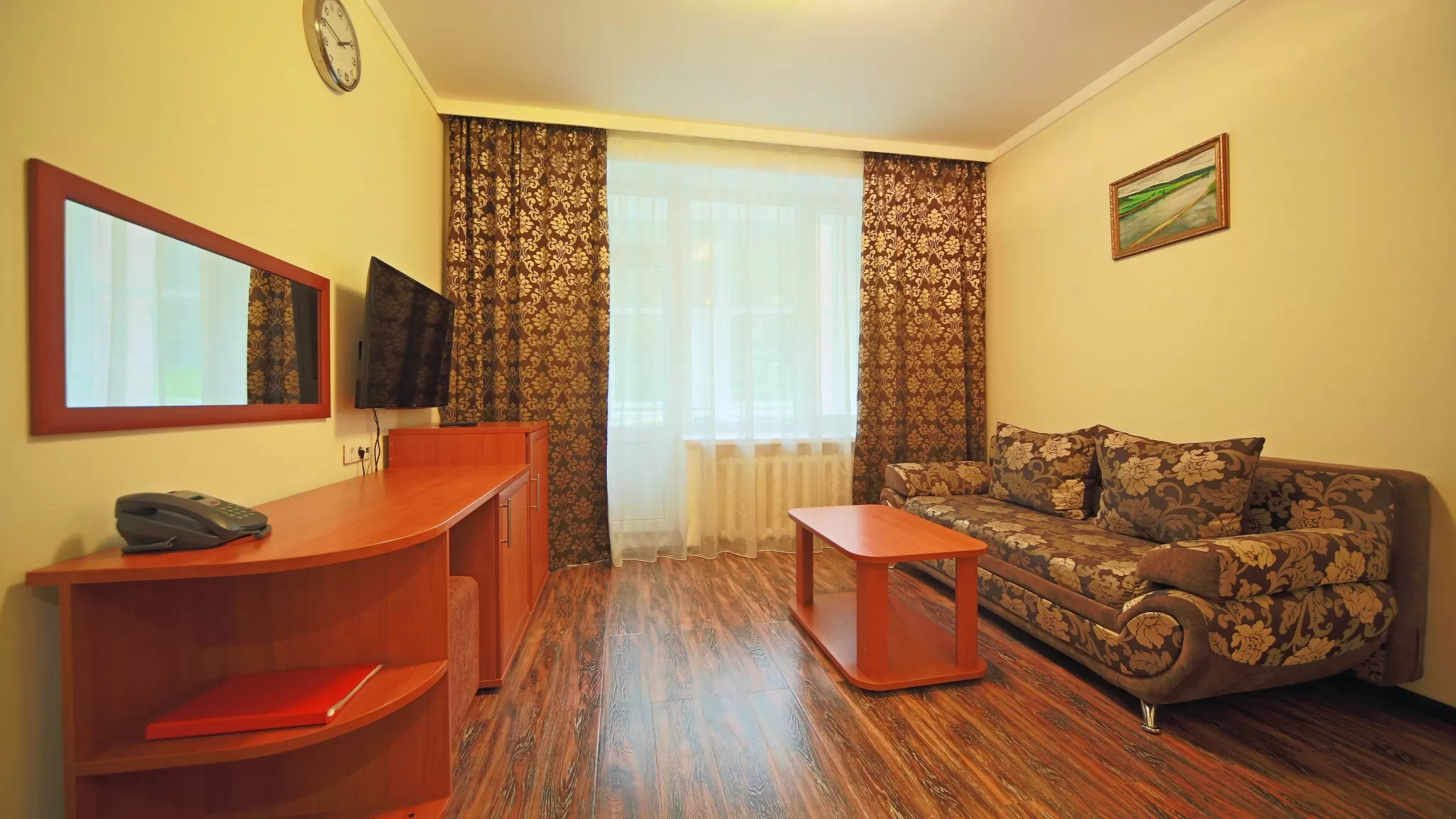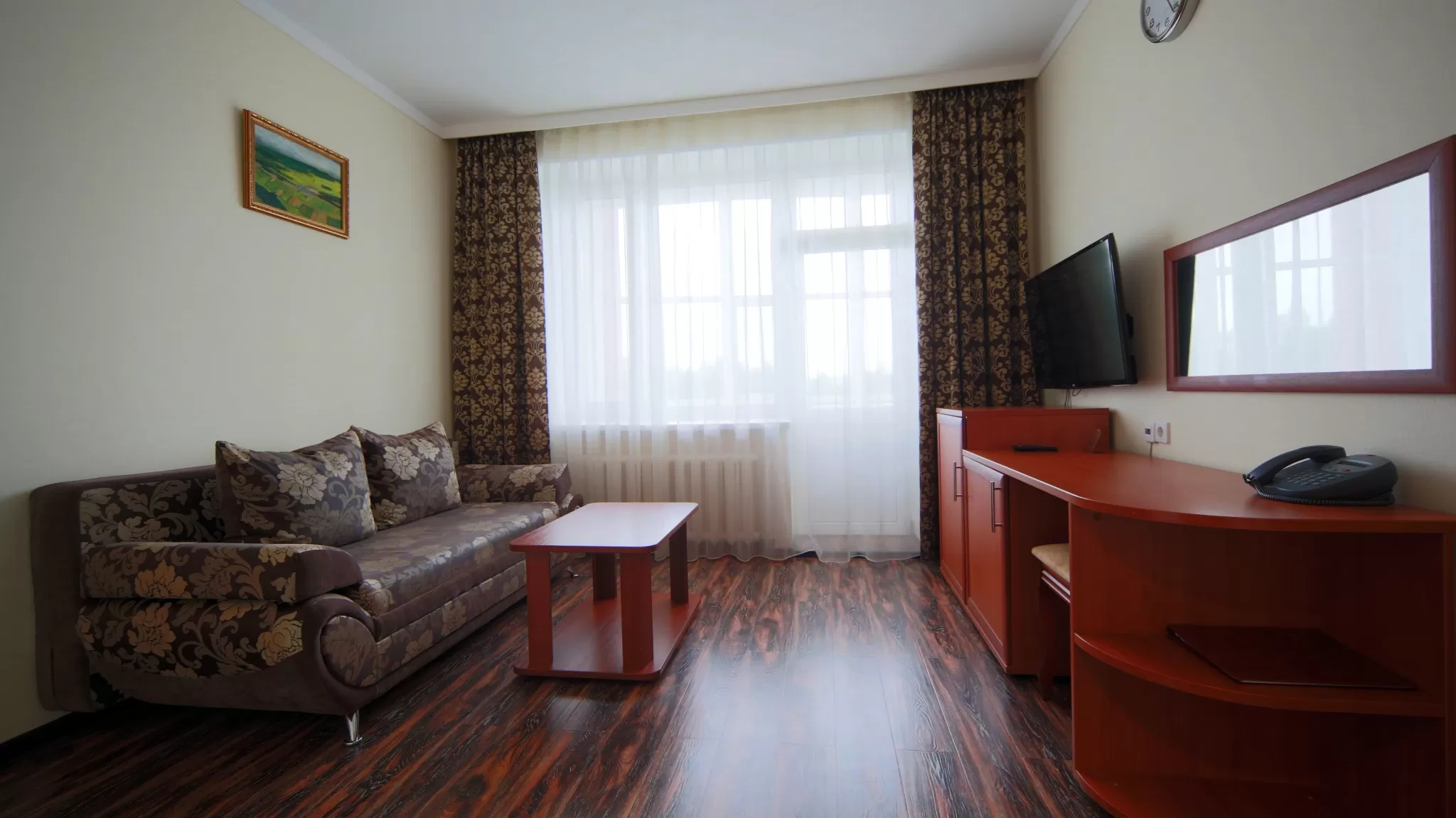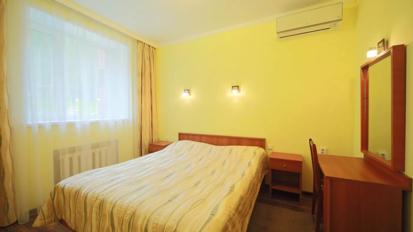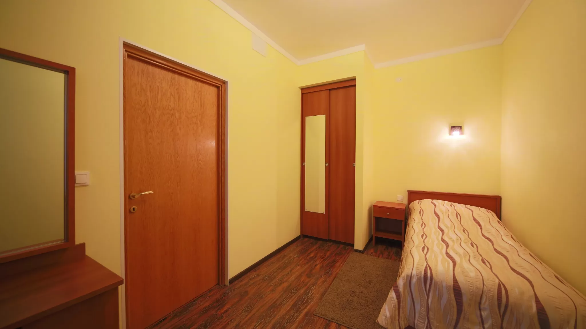 Элегантный номер может принять трех гостей. Очень удобен для размещения семьи с ребенком. В номере: 1 двуспальная кровать и 1 односпальная кровать.